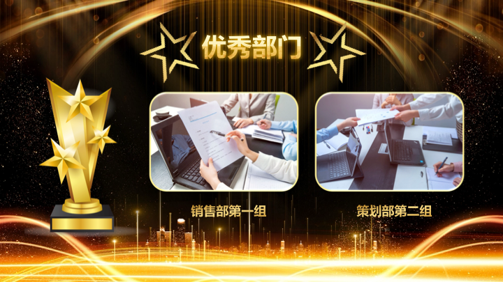 - 颁奖页面:特别设计了多种优秀员工的展示和颁奖页面,包括个人奖、团队奖等,方便您展示获奖者的风采和成就,增强盛典的荣誉感。