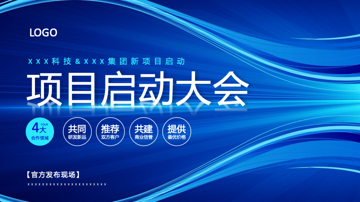 蓝色科技商务风项目启动大会PPT模板文档资源下载