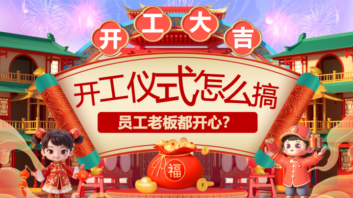 模板风格:国潮卡通、红色喜庆、开工大吉、活动策划