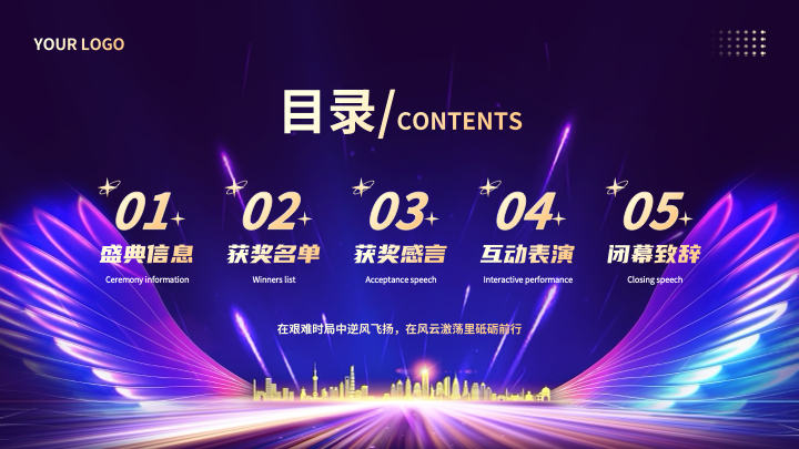 炫彩科技感年会颁奖盛典PPT模板 炫彩科技感年会颁奖盛典PPT模板 炫彩科技感年会颁奖盛典PPT模板 炫彩科技感年会颁奖盛典PPT模板以下为模板内部核心页面的截图预览,您可以直观地感受到其炫酷的科技感设计和完整的盛典内容框架。
