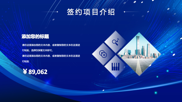 - 设计风格:整体采用富有科技感和未来感的设计语言,以深蓝色为背景,运用流畅的蓝紫色渐变和抽象光效,营造出高端、动感的视觉氛围。