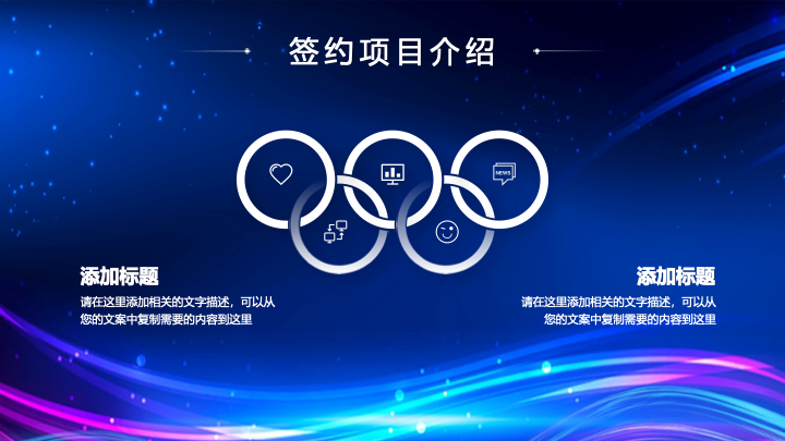 本模板是科技、互联网、游戏、文娱等行业的企业举办项目启动大会、新品发布会、战略发布会的绝佳选择。其充满活力的设计,也同样适用于各类需要展现创新精神与未来感的商务场合。