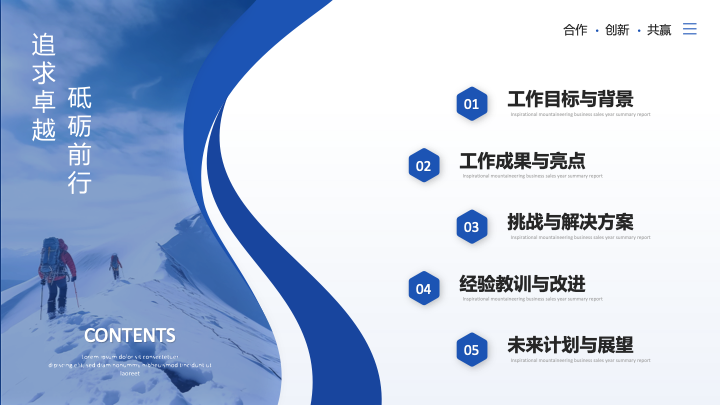创意励志登山风年终工作总结PPT模板内容页介绍