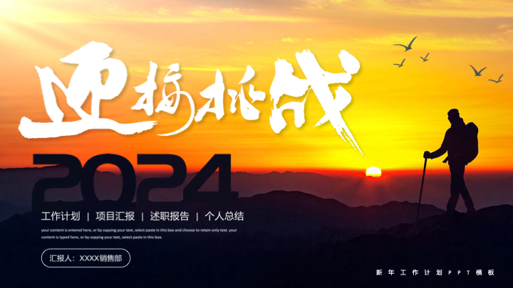 本模板是各类企业、单位进行年度工作总结、季度汇报、销售动员大会、项目复盘的理想选择。其充满激情与奋斗精神的设计,能够有效鼓舞团队士气,彰显团队在过去一年中不畏挑战、勇攀高峰的卓越成就。