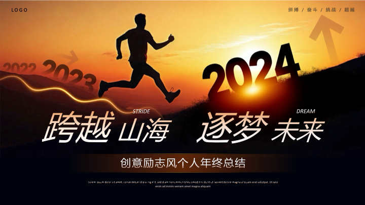 本模板是各类企业、单位进行年度工作总结、季度汇报、销售动员大会、项目复盘的理想选择。其充满激情与奋斗精神的设计,能够有效鼓舞团队士气,彰显团队在过去一年中不畏挑战、敢于拼搏的卓越成就,适用于各行各业的年度汇报场合。