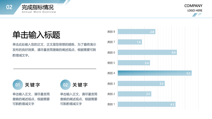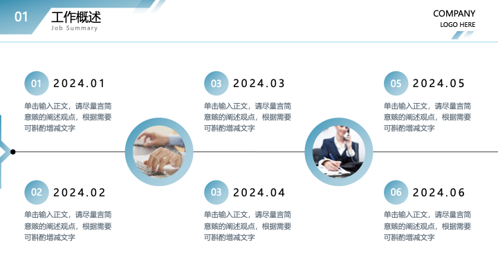 - 图文并茂:提供了丰富的图文版式,您可以轻松替换公司LOGO、项目图片和具体文案,快速制作出一份重点突出、气势十足的汇报文稿。