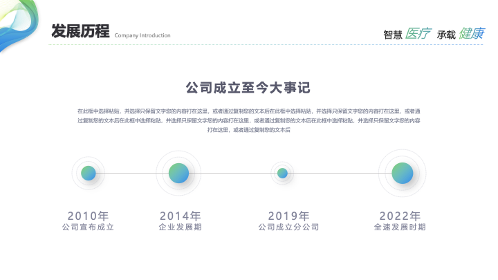 - 公司简介:此章节包含企业文化、企业概况、发展历程(时间轴)、荣誉资质以及团队介绍等页面,用于全面展示公司的综合实力和背景。