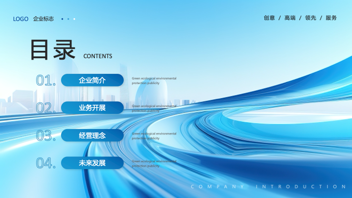 清新简约商务风公司介绍产品宣传PPT模板 清新简约商务风公司介绍产品宣传PPT模板 清新简约商务风公司介绍产品宣传PPT模板 清新简约商务风公司介绍产品宣传PPT模板以下为您展示模板的部分精选页面,包括清新开阔的封面、结构清晰的目录、以及涵盖公司历程、产品介绍、成功案例的多种专业内页版式,助您全面了解其专业、现代的设计风格。