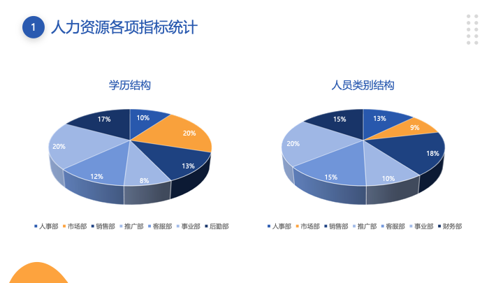 - 人力资源配置管理:此章节包含招聘渠道对比、入离职分析、员工结构图表等专业HR数据图表,通过图表和简洁的版式,让数据呈现清晰直观。