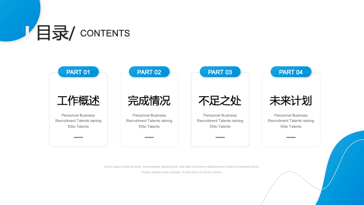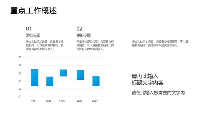 - 内容框架:模板内置了完整的工作汇报逻辑框架,包含“工作概述”、“完成情况”、“不足之处”和“未来计划”四个核心环节,帮助您全面梳理年度工作。