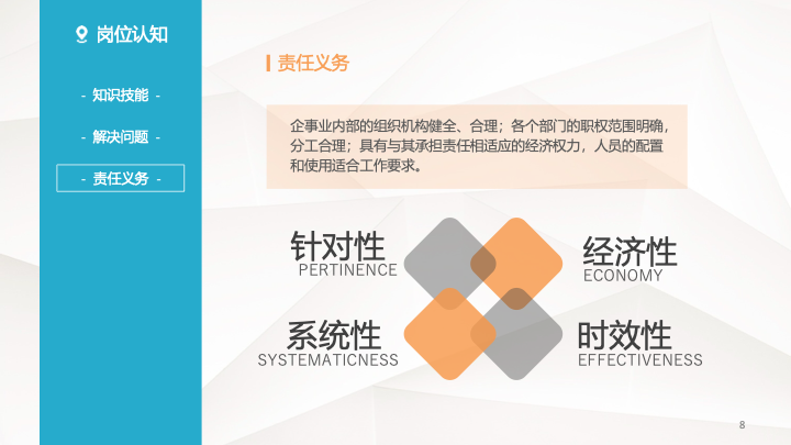 - 内容框架:模板内置了完整的岗位竞聘逻辑框架,包含“自我介绍”、“岗位认知”、“竞聘优势”和“工作规划”四个核心环节,帮助您全面展现个人综合实力。