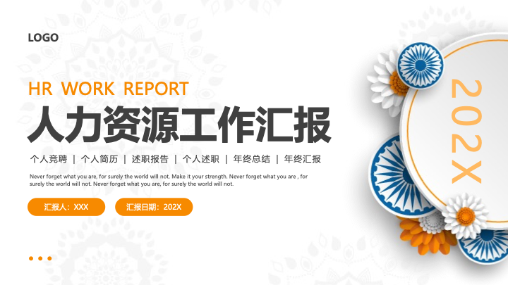 这是一款风格清新明快、富有创意的简约剪纸风人力资源工作汇报PPT模板。模板以干净的白色为底,点缀以淡雅的暗纹和色彩鲜活的剪纸风花卉元素,营造出一种既专业又不失亲和力的工作氛围。整体设计雅致而现代,非常适合人力资源部门用于进行年度工作总结、部门汇报等,能够展现出HR团队的活力与细致。