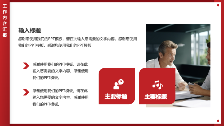 - 多样化图文版式:模板内页设计注重实用性与美观性的平衡,提供了多种专业的图文混排版式,包括双重曝光效果的图片展示、多栏对比等,布局清爽,阅读舒适。