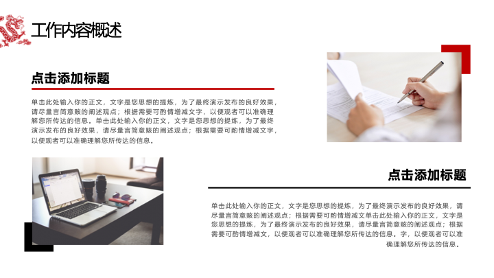 清新简约商务风新年工作计划PPT模板内容页介绍