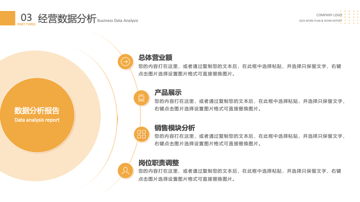 - 专业数据图表:包含环形百分比图、数据列表等多种数据可视化图表,设计与整体风格统一,便于直观地呈现工作成果和数据分析。