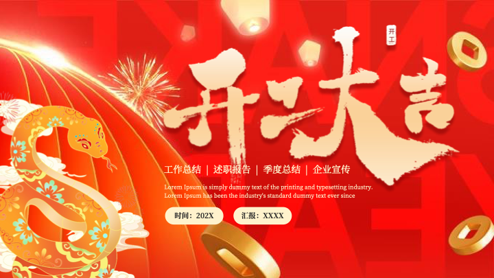 本模板是各类企业、单位在春节后举办“开工大吉”动员大会、新春团拜会、年度目标宣讲会的理想选择。其充满激情与祝福的设计风格,能够迅速点燃员工的工作热情,为新一年的业绩目标营造一个充满活力的开端。