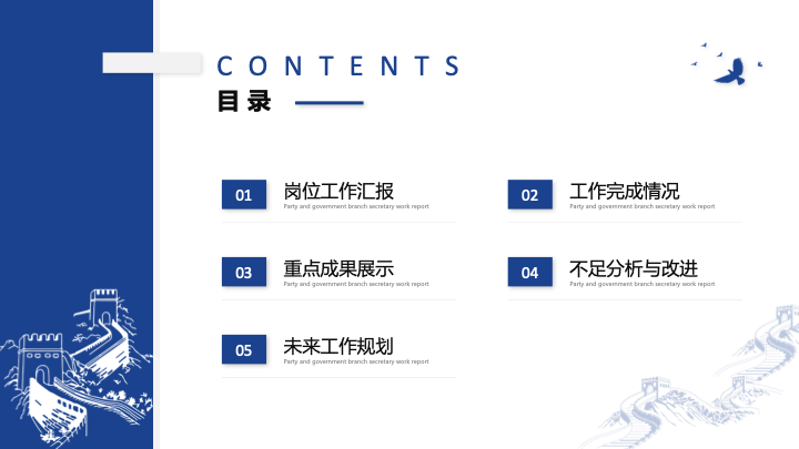 本模板是公安、检察、法院等政法机关及各级党政部门进行年终总结、工作汇报、党建学习的理想选择。其独特的中国风设计,也尤其适用于文化、宣传等部门进行专题汇报,能够彰显单位的文化素养与庄重形象。