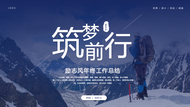 模板风格:励志大气、登山主题、商务汇报、年终总结