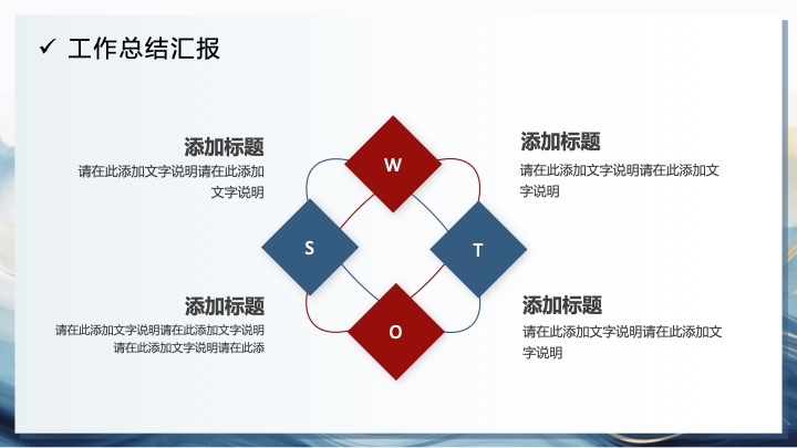 • 实用商务图表:模板内置了多种实用商务分析图表,包括SWOT分析图,、时间轴 、以及百分比数据展示等,兼具设计感与功能性 。