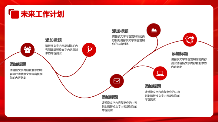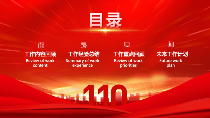 - 可视化图表:内含多种专为数据汇报设计的图表,如条形图、折线图等,均进行了与整体风格一致的红金配色设计,便于清晰展示年度数据。