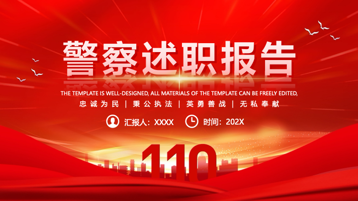 红色大气党建风公安部门年终工作总结汇报PPT模板适用场景与行业