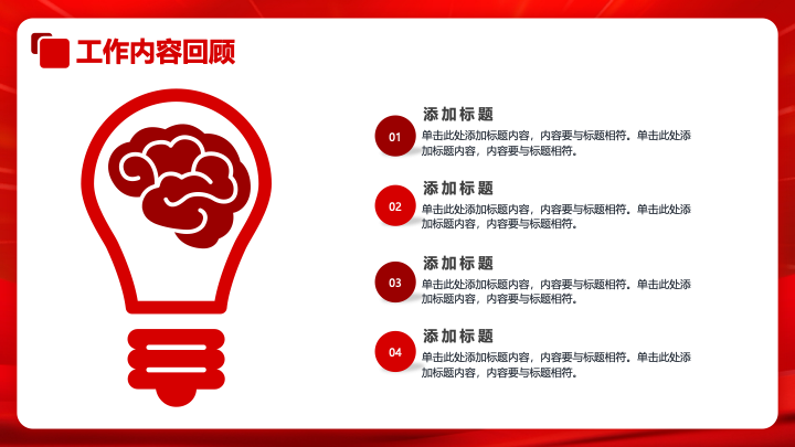 - 图文并茂:提供了丰富的图文版式,您可以轻松替换单位LOGO、工作照片和具体文案,快速定制出一份专属的年终总结汇报。