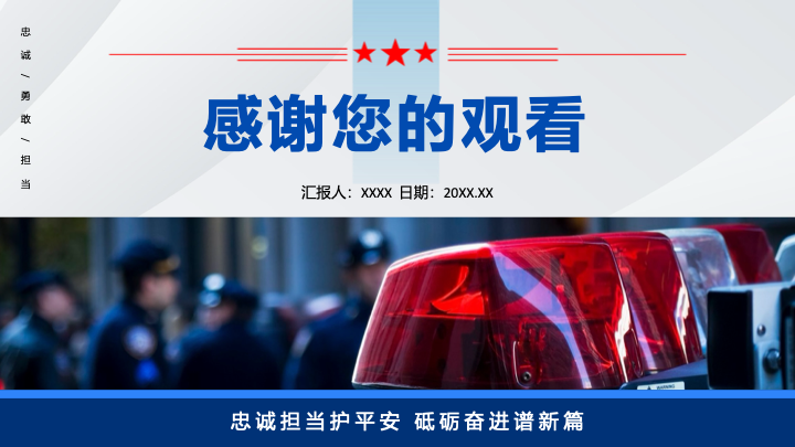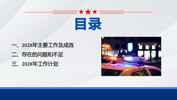 模板风格:公安政务、简约大气、红蓝配色、年终总结