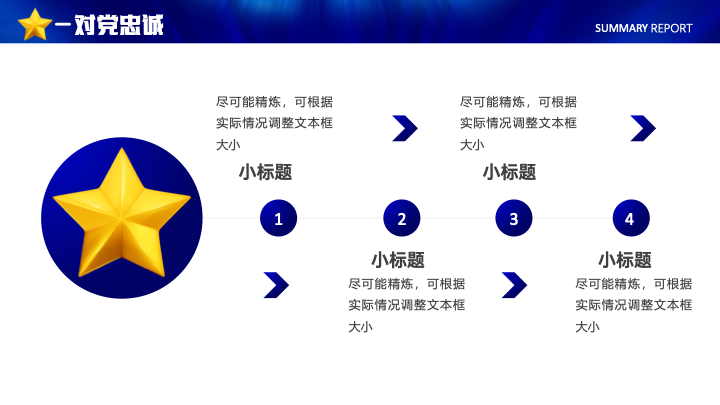 • 图文并茂:提供了丰富的图文版式,您可以轻松替换单位LOGO、工作场景照片和具体文案,快速定制出一份专属的年终总结汇报。