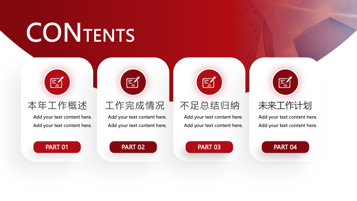红色大气商务风年终总结暨新年计划PPT模板内容页介绍