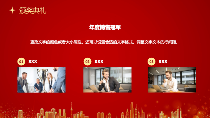 红金大气风企业年会颁奖盛典PPT模板内容页介绍