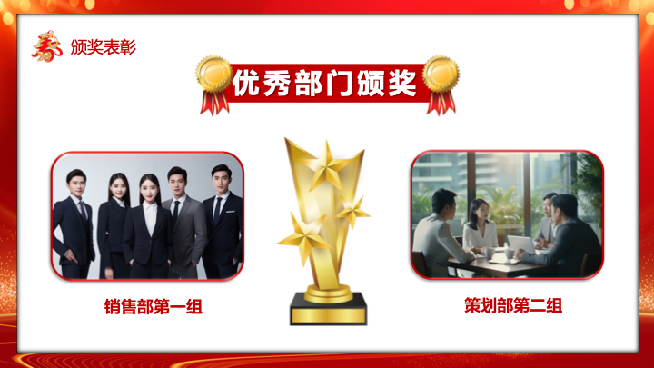 - 颁奖页面建议:可设计多种优秀员工的展示和颁奖页面,包括个人奖、团队奖等,方便您展示获奖者的风采和成就,增强盛典的荣誉感。