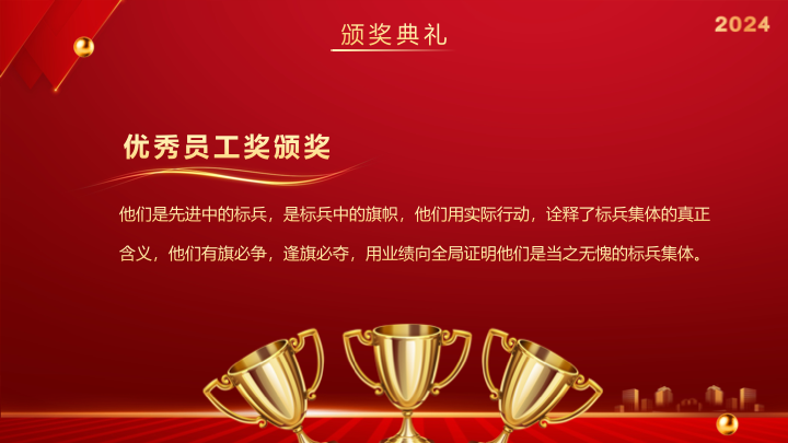- 颁奖页面建议:可设计多种优秀员工的展示和颁奖页面,包括个人奖、团队奖等,方便您展示获奖者的风采和成就,增强盛典的荣誉感。