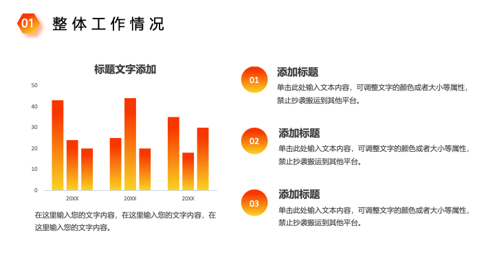 - 多样化内容版式:模板内页设计注重信息的清晰呈现,提供了丰富的实用布局,包括多栏文本对比、图文混排、要点列表等,能满足行政工作汇报的各种需求。