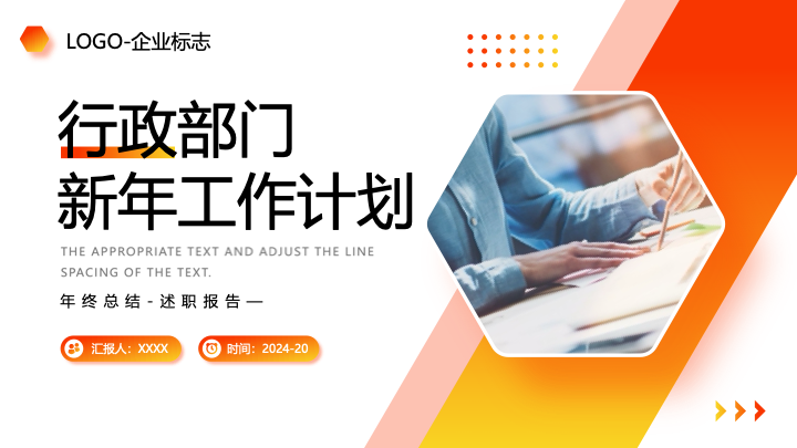 此模板专为行政经理、人事专员、部门主管及各类企业职能部门的员工设计,旨在提供一份清晰、专业的工作汇报方案。其通用性强的商务风格,使其成为制作部门新年工作计划、年度工作总结、述职报告及季度工作汇报的理想选择。模板适用于所有行业的内部汇报,尤其是在政府机关、事业单位、大型国企以及各类公司的行政、人事、财务等职能部门。