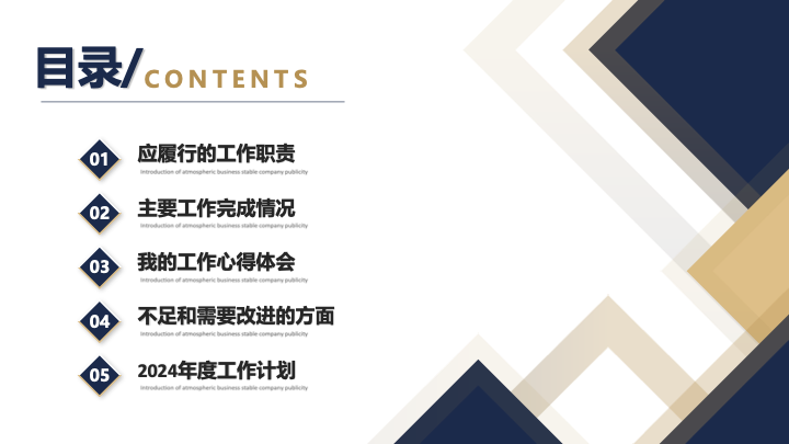 本模板是职场人士进行年度总结、季度汇报、项目复盘、述职报告的理想选择。其专业、通用的设计风格,使其能够胜任各类商务演示场合,适用于互联网、金融、咨询、教育等各行各业。