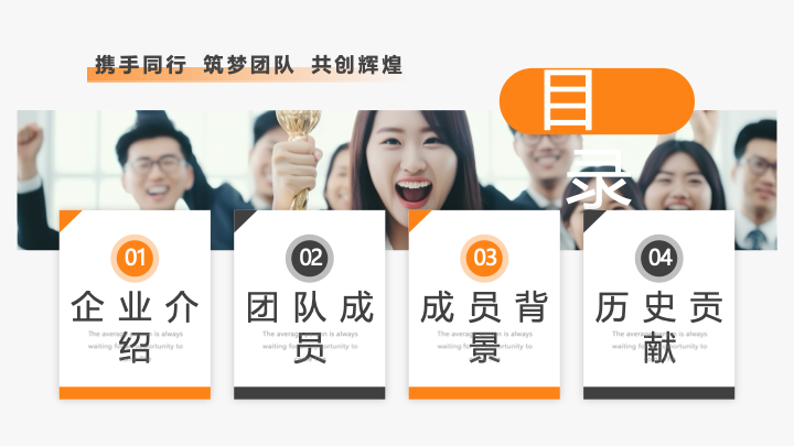简约商务风公司宣传介绍PPT模板 简约商务风公司宣传介绍PPT模板 简约商务风公司宣传介绍PPT模板 简约商务风公司宣传介绍PPT模板以下为模板中部分核心页面的截图,包含了封面、目录、发展历程时间轴以及团队介绍等,助您全面了解此模板的专业结构与简约设计。