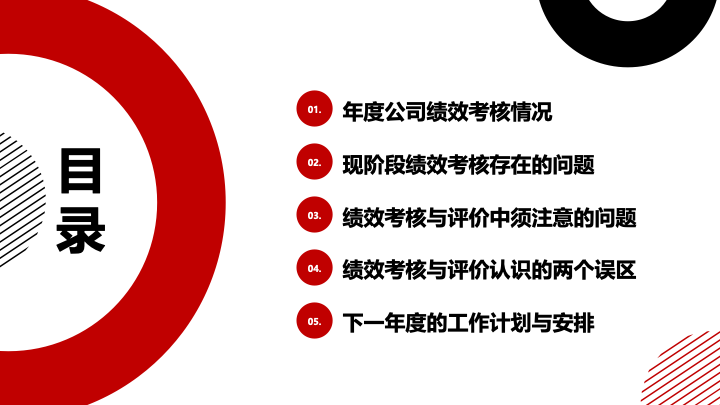 该PPT模板结构极其专业和完整,围绕“绩效考核”这一核心,进行了由表及里、从回顾到规划的深度剖析,共包含五个关键部分。