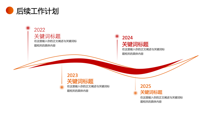 - 时间轴规划页:特别设计了专业的时间轴页面 ,用于直观呈现未来数年的工作规划与关键节点,让计划一目了然。