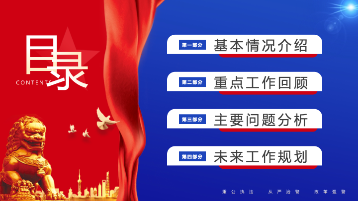 庄重党建风公安部门年终工作总结PPT模板 庄重党建风公安部门年终工作总结PPT模板 庄重党建风公安部门年终工作总结PPT模板 庄重党建风公安部门年终工作总结PPT模板以下为模板内部核心页面的截图预览,您可以直观地感受到其庄重大气的党建风格和完整的工作总结框架。