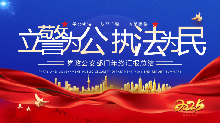 本模板是公安、检察、法院等政法机关及各级党政部门进行年终总结、工作汇报、党建学习、表彰大会的专用选择。其庄重、正式的设计风格,完美契合党政机关的汇报要求,能够营造出严肃、专业的会议氛围。