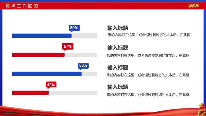 • 设计风格:整体采用大气庄重的党政风格,以红色和金色为主色调,运用了党徽、国徽、长城、祥云等标志性元素,视觉效果庄严、正式。